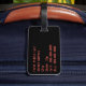 Bagagetsedeln eller märkrn av väskan är försedd med mitt silkesröda digitalkonst över svart design. Fyll i fälten mall med ditt namn, inledande(a), ta bort texten och/eller klicka på anpassa för att välja ett typsnitt stil, storlek och färg som du vill ha.
