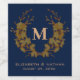 Monogram Inledande Guld Blommönster Navy Blue Vinflaska Etikett