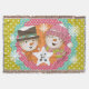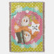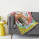Ett snögubbe i top hat, ett snögubbe i en rosa vinterhatt och strimlad scarf, en bakgrund av vit polka dots på senap, akvafblått, rosa och orange med en vit stjärna som du enkelt kan anpassa med din monogramsstart! Den här söt julfilten i snögubbe kommer att bli en skatt år efter år!
