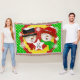 Ett snögubbe i top hat, ett snögubbe i ett rött vinterhat och strimlad scarf, en bakgrund med vitt polka dots på rött, gult och grönt med en vit stjärna som du enkelt kan anpassa med din monogramsstart! Den här söt julfilten i snögubbe kommer att bli en skatt år efter år!