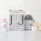 Monogram J Initial Black and White Rulla Mönster-omslagning kan anpassas med en bild, namn, text, logotyp eller ett foto. Byt vit bakgrund till en blå nyans, grönt, gult, orange, rosa, röd, brun och lila. Underbar för att stänga jul-, födelsedag-, babydusch- eller bröllopsgåvor.