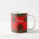 Monogram kaffemugg (personlig) - God Jul och Gott Nytt År! XMAS Liten julstrumpa dekorerad med magiska jul symboler, vinterpresenter element mönster, snöman, julgran, julklot, renar, snöflingor, julstjärnor och fler festliga figurer på jul rutor ornament, Skottland mönster (grön & röd färg) och Rustik kvist kant julbärsskrän, krans dekoration. Originell trendig grafisk design. Hem > Köksredskap > Drickgods > Muggar & koppar Vinterpresenter födelsedagsgåvor dekoration. Monogram. Design med text mall. Personliggör dem genom att lägga till namn.