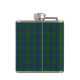 Skölj kolven med den klassiska blå och grönt klan Montgomery tartan plaid mönster. Anpassa de tre brev-monogrammet på plaketten vid metall till kostym till era behov. Underbar presentidé för vilken kille som helst och särskilt underbar som bröllopsfest för marskalkar.