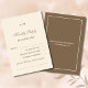 Förhöj din kristna bröllopspapeter med detta personliga, minimalistiska taupebröllop RSVP-kort, med en minimalistisk, linjerad design och det eleganta monogrammet för paret. Designat för det moderna paret, visar detta svarsbrev chic djup taupe-typografi och en graciös scriptfont, vackert kontrasterad mot en klassisk krämfärgad bakgrund. Den enkla men raffinerade layouten, med en innerlig bibelvers på baksidan, kompletterar en modern bröllopsestetik och erbjuder gästerna ett stilrent sätt att svara. Perfekt för att para ihop med en komplett svit minimalistiska bröllopsinbjudningar, blandar detta svarsbrev tidlös sofistikation med samtida charm för din Gud-centrerade speciella dag.