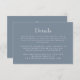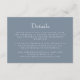 Denna eleganta moderna bröllopsdetaljer bifogad kort har klassisk vit text på en dammig blå bakgrund. På baksidan av kortet omger en vit vintage växtkrans krönika parets monogram initialer, med deras namn och bröllopsdatum nedan.