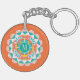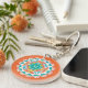 En mjuk, pastelliserad blommigt mandala mönster i teal och korall. Artist: Harriet Sussman