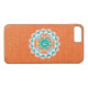En mjuk, pastelliserad blommigt mandala mönster i teal och korall. Artist: Harriet Sussman