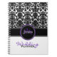 Monogram Lila Black White Damask bröllopsplan Anteckningsbok Med Spiral