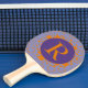 Monogram Initial Orange Lila Circles Squares Ping Pong Paddle. Lyft upp ditt bord-tennis-spel med den här söt orange, blåa cirkelformade fyrkanter mönster-yr konst.