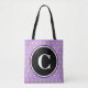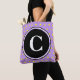Chic, reversibel gult polka dots på lilans bakgrund. Framsidan av säcken har en stor svart cirkel att anpassa med den inledande mongrammen i vit text. Trendigets geometriska kvinnoväska mode för vår och sommarmånader. Originaldesign © TamiraZDesigns. www.zazzle.com/tamirazdesigns