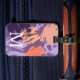 Trendig bagagemärke med abstrakt mönster vid lila och koral med ditt monogram. Perfekt som tillägg till din resväska eller gåva som är ge för familj och vänner. Anpassa monogrammet med typsnittet stil och färg.