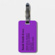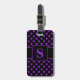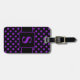 Bagagetagg med en lila på svartpolka punkt mönster och ditt monogram. Anpassa med ditt monogram, initialt och information med hjälp av enkla mallar. Teckensnitt färg, stil och storlekt teckensnitt är anpassade.