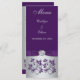 Den här eleganten och det prisvärda menykortet för lila och silver grått blommigt har ett tryckt band och en silver faux-graverad tryckt medallion på det som matchar den bröllopsinbjudan som visas nedan. Den är designad på ett rackkort med en glansig framsida och projektionsyta avslutande på baksidan. Om du vill ha ett menykort på inbjudan som är pappert för att matcha dina inbjudningar, eller om du har några förfrågningar om ytterligare objekt eller ändringar, kan du skicka e-post till niteowlstudio@gmail.com med din förfrågan.