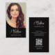 Öka din professionell med det här Monogram Logotyp Anpassningsbar Photo QR-Affärskortet. Anpassa den med initialer, namn eller anpassningsbar i monogrammet och visa ett foto av ditt verk eller dina produkter. Baksidan har plats för din kontaktinformation, social-mediehandtag, en QR-anpassningsbar och redigerbara ikoner för ett elegant, modernt utseende. Perfekt för konstnärer, frisylister, salonägare och skönhetsvårdande professioneller tittar ge ett bestående intryck. Anpassa din idag!