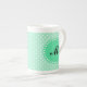 Monogram Magic Mint och White Polka Dot Benporslin Mugg