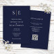 Denna eleganta, minimalistiska, marinblå och gyllene bröllopsinbjudan kan anpassas med era initialer och bröllopsinformation. Med er bröllopswebbplats och er QR-kod på baksidan. Designad av Thisisnotme