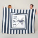 Monogram Marinblå Rand Sjöhästar Nautilus Fleecefilt