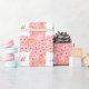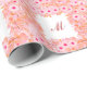 Skriptmonogram ramar med en slitis av blommor och löv i nyans av mjuk rosa, persika och aprikos, med djupa blomcentrum för rosa och en gräddvit bakgrund