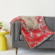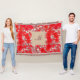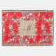 Skriptmonogram ramar med en slitis av levande röda blommor och löv i skuggor av taujpe, grått/grått och vitt, med en taupliknande bakgrundsbild
