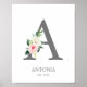 Blommigt bokstavstryck, en gåva till en ny flicka. Personligt initial, blommig initial väggkonst, initialtryck för barnkammare.