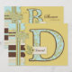 D monogram med namn bricka och skalopad trimbindning kant med novelty trims och 3D ser ut som polka punkt grog med knapp öga.