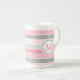 Monogram med rosa och Grått stripe Benporslin Mugg