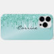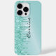 Monogram Metallisk Aqua Blue Glitter Drip Android