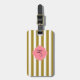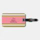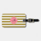 Monogram metallisk bagagetagg i guld och rosa stripe. Utformningen har en metallisk guld och vit stripe mönster och en rosa quatrefolieform i mitten med anpassningsbarna som inledning.