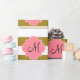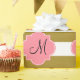 Monogram metallisk guld och rosa stripe papper förpackning. Utformningen har en metallisk guld och vit stripe mönster och en rosa quatrefolieform i mitten med anpassningsbarna som inledning.