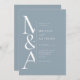 Modern minimal inbjudan till Dusty Blue Wedding. Har fet monogramtypografi och minimal grafisk design. Anpassa texten med all information om din speciella dag.