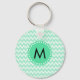 Monogram Mint Grönt och White Chevron Mönster Nyckelring