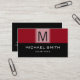 Monogram Modern Black & Barn Red Background Visitkort