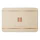 Trendig lyxolja exklusiv tittar badbad i monogrammet i badrum med en faux guld-metallisk glitter-ruta och rand över en snyggt, elfenbensgräddbakgrund. Anpassa den med namn och monogram som en början. Det kan vara en personlig personlig eller familjegåva till eleganten för en födelsedag, uppvärmning av hemmet, pension, helgdag, årsdag eller något annat tillfälle.