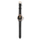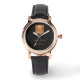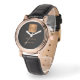 Svart läderklocka i lyxig elegant ser ut för kvinnor med en monokulär kvadrat i guld glitter och personlig namn namnteckning.