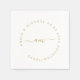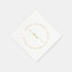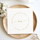 Monogram, modern, minimal, vit servett för bröllop. Personlig servett med namn och datum. Med guld-beige färgtyp, böjd monogram. Era namn, datum och bröllopsplats skrivs i en cirkel runt monogrammet.