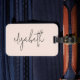 Snyggtens bagagemärke för rosa innehåller ditt namn i ett modernt handskript på framsidan och har en kortplats på baksidan för dina uppgifter. Perfekt för dig själv eller gåva till tillfälle.