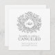 Mörk grått-handtaget löv monogram bröllop annullerade annonskort. Det här enkla men snyggt-kortet ingår i den motsvarande mörk grått-handdragna löv monogram bröllop-uppsättningen. Perfekt för använda som ett informationskort för bröllop för att informera dina gäster om ett bröllop eller en inställd händelse eller en omläggning av schemat på grund av sjukdom eller oförutsedda omständigheter. Enkel löv-design som kretsar kring din egen initialer-design i monogram. I klassisk monoton mörk grått och vitt. Andra alternativ för färg finns tillgängliga. Ursprunglig utformning av Sarah Trett för www.mylittleedenweddings.com