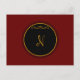 Monogram N-skript i guld på svart cirkel, rött vykort för mörk.