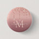 Monogram Name Text Rose Gold Blush Glitter Button Knapp