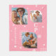 Monogram Namn 3 Photo Collage Trendig Modern Fleece Blanket har en fotokollage av tre av dina favoritfoton med personlig namn och ett monogram i elegant-vita skript på rosa bakgrund. Anpassa genom att redigera texten i de angivna textrutorna. Perfekt för födelsedag, jul, Mors dag, Fars dag, syster, kusiner, bästa vänner och mycket annat. PHOTO TIP: centrera dina foton innan du laddar upp dem till Zazzle. Designad av ©Evco Studio www.zazzle.com/store/evcostudio