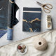 Monogram Namn Agate Navy Blue Guld Marble Gift Presentpapper