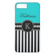 Monogram Namn Aqua Black Stried Mönster Case-Mate iPhone Skal