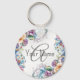 Monogram Namn Färgglad Blommig Ram Elegant Modern Nyckelring