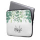 Detta botaniska laptop sleeve dekoreras med vattenfärgad eukalyptus och annan bladfärg i gröntens nyanser. Anpassade enkelt med ditt namn eller monogram. Ursprunglig vattenfärg © Michele Davies.