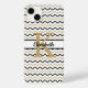 Monogram Namn Initial Black Guld Chevron Zig Zag