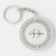 Denna akryliska nyckelkedja kombinerar hållbarhet med stil och har ett monogram i mörk grått som är inramat av en estetiskt tilltalande grekisk meander gräns. Med en benvit bakgrund är det en unik och elegant biet för daglig använda. En idealisk gåva till dem som värdesätter personliga beröringar, den här nyckelkedjan är perfekt för födelsedagar, husuppvärmning eller som ett tänkvärt vardagstillbehör.