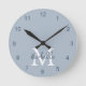 Monogram Namn Initial Script Dusty Blue Rund Klocka