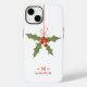 IPhone Smart Phone-väskan med Monogram Namn jul Holly Winter Blommigt har en grov dekoration i rött och grönt med din personlig namn och ett monogram i elegantens röda skript nedan. Anpassa genom att redigera texten i textrutorna. Perfekt för födelsedag, jul, Mors dag, bästa vänner och mycket annat. Designad av ©Evco Studio www.zazzle.com/store/evcostudio