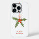 IPhone Smart Phone-väskan med Monogram Namn jul Holly Winter Blommigt har en grov dekoration i rött och grönt med din personlig namn och ett monogram i elegantens röda skript nedan. Anpassa genom att redigera texten i textrutorna. Perfekt för födelsedag, jul, Mors dag, bästa vänner och mycket annat. Designad av ©Evco Studio www.zazzle.com/store/evcostudio