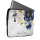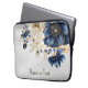Monogram Namn-marinblå gulvit Blommigt Laptop Fodral